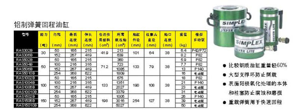 铝制弹簧回程油缸