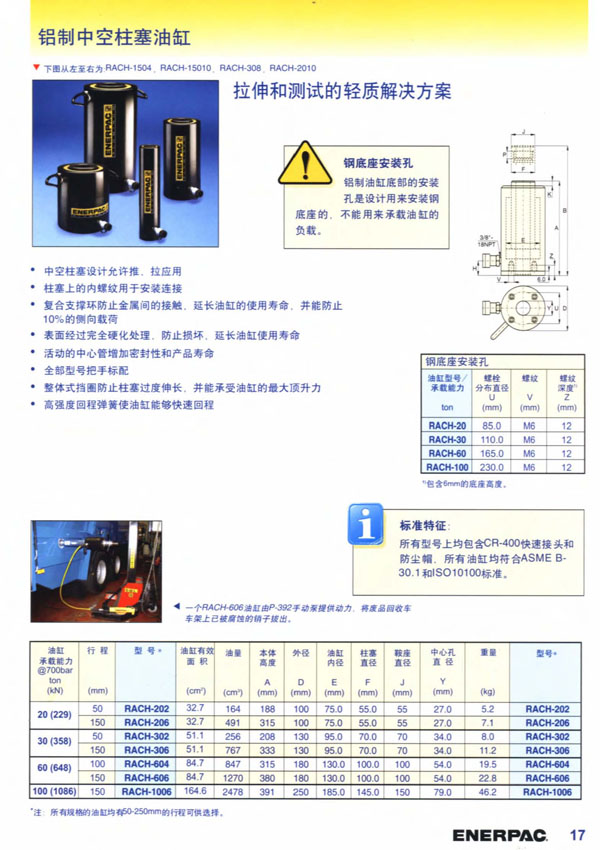 铝制中空柱塞液压缸 RACH
