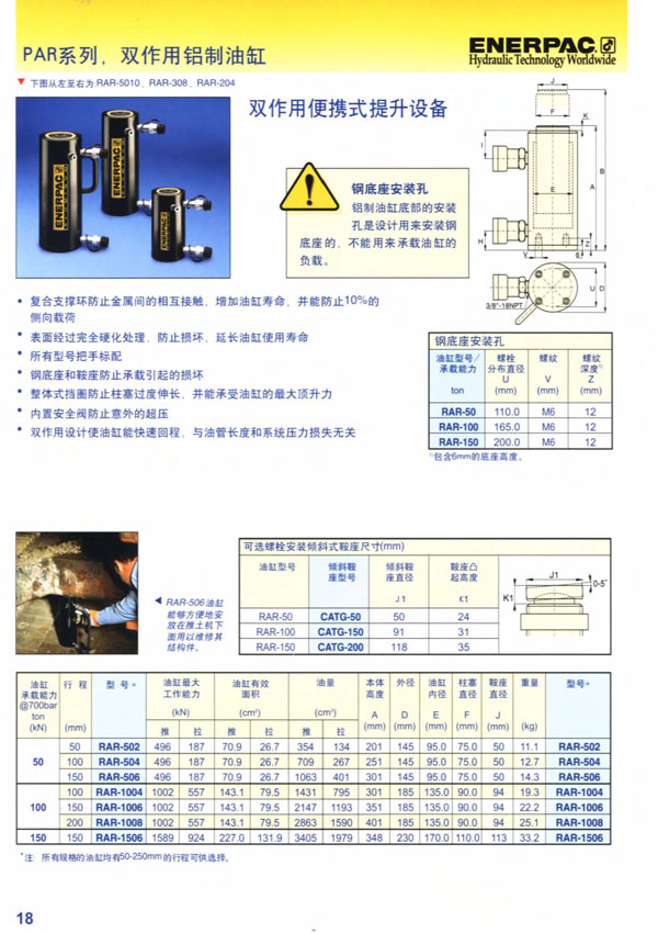双作用铝制液压缸 RAR