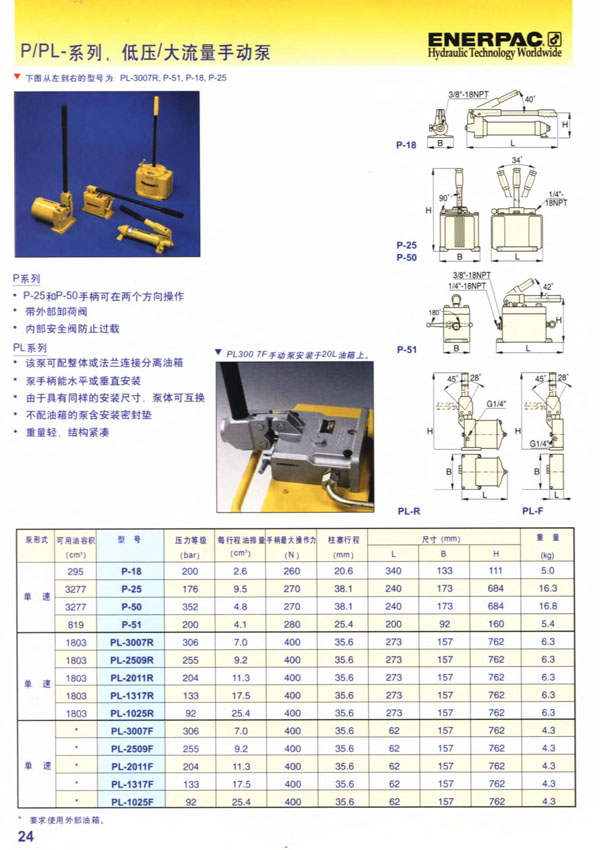 低压/大流量手动泵 P